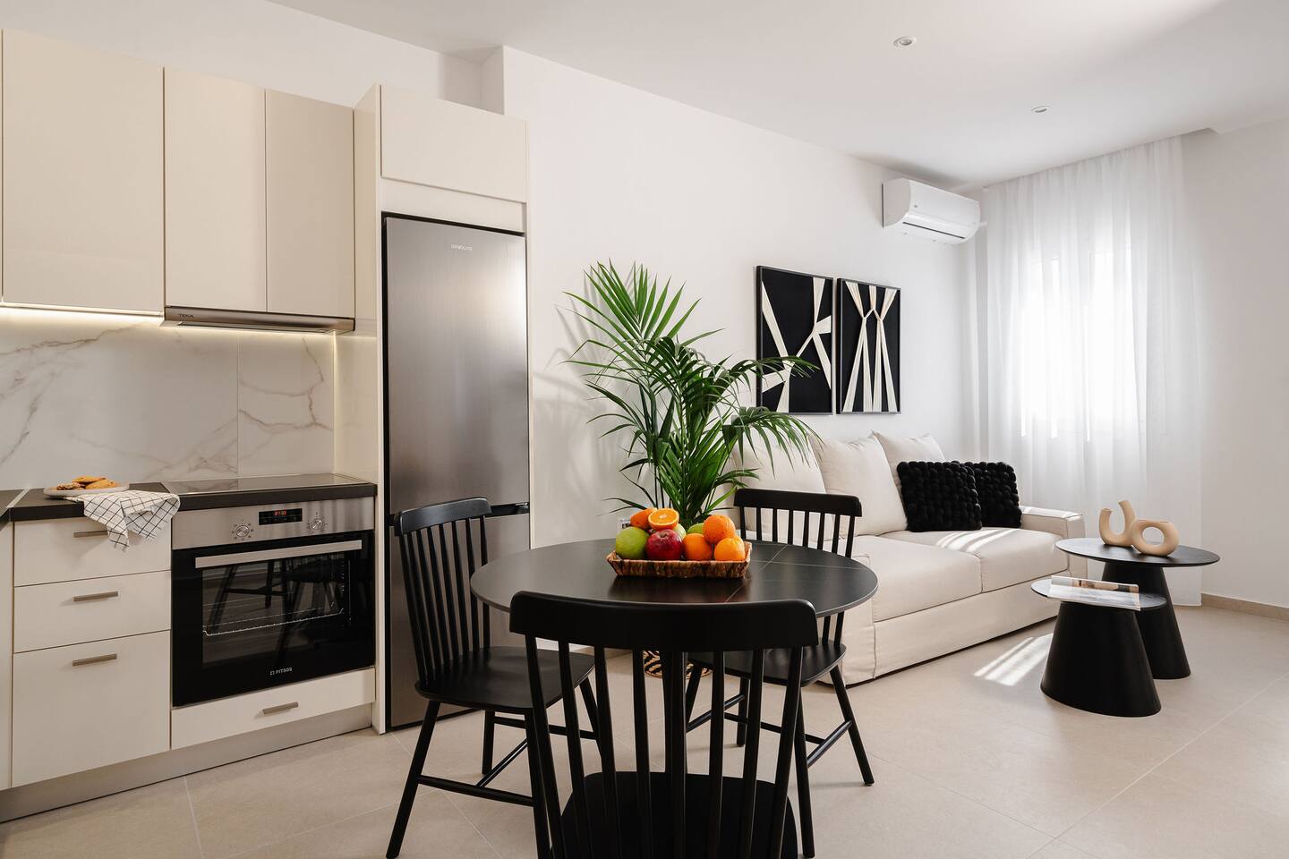 LIVING HOME is a stylish 2-bedroom villa nestled in the peaceful landscape of Mikri Vigla, just minutes from its golden beaches and turquoise waters. Designed with clean Cycladic architecture and elegant simplicity, it offers a blend of comfort, functionality, and a true connection to the island’s natural rhythm.