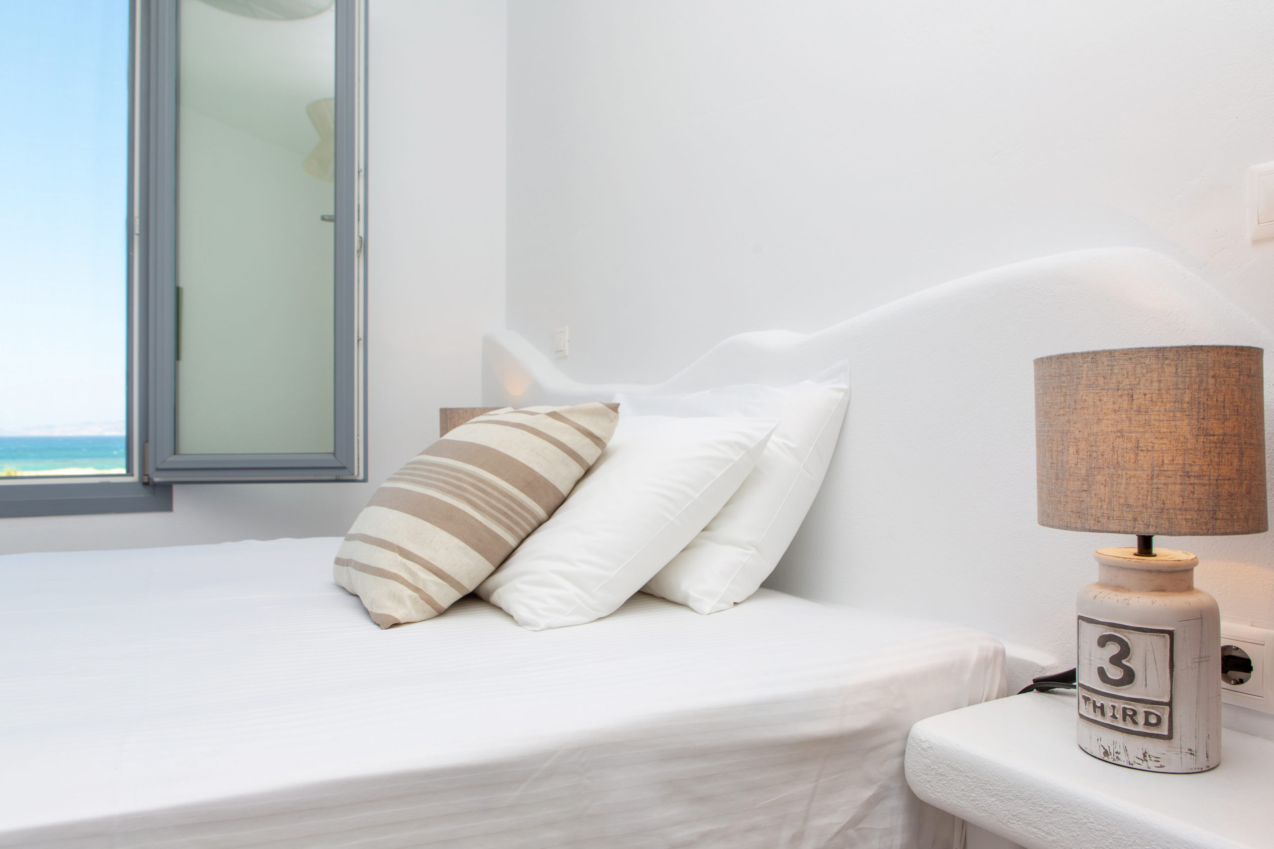 Rosa’s private land is built 100meters from Plaka Beach, providing a peaceful ambience for moments of utmost relaxation. The outdoor space offers an expansive terrace Soak up the sun on the loungers and relax under the pergola in your terrace during the hot afternoon. You’ll have pristine views of the western beaches of Orkos, Mikri Vigla and the surrounding islands!